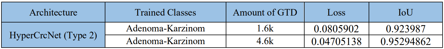 Similarly, for HyperCRC-Net Type 2, which focuses on segmentation, an increase in GTDs leads to a reduction in the loss function and an improvement in the Intersection over Union (IoU) metric. This indicates that the model is becoming more accurate in aligning its predictions with the actual data.