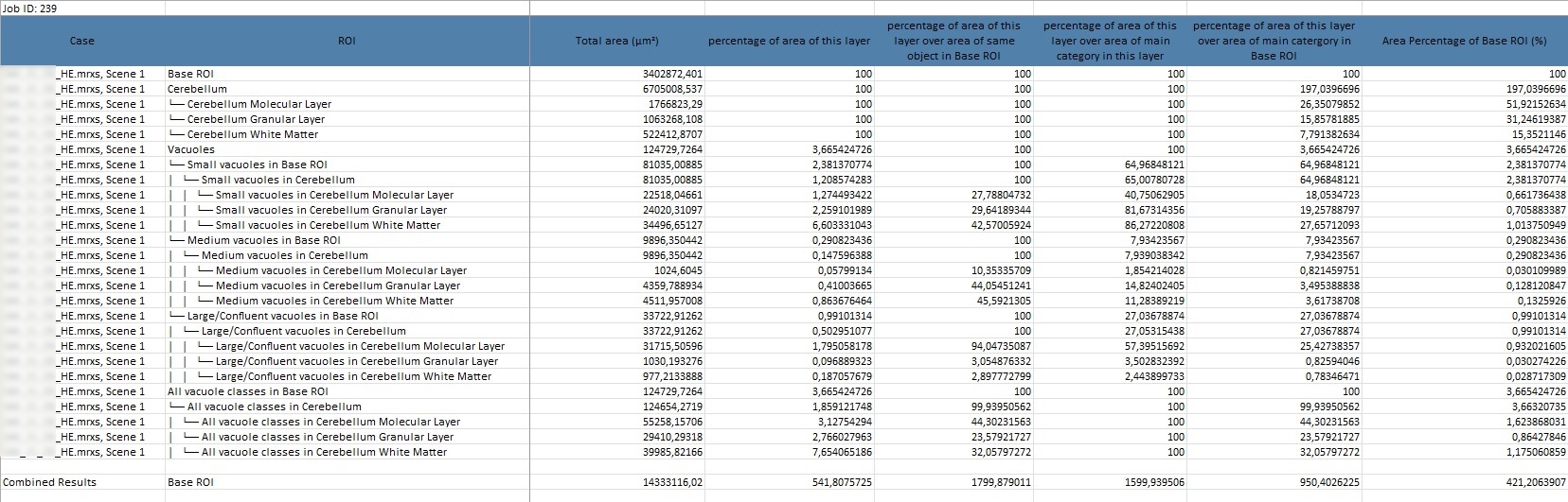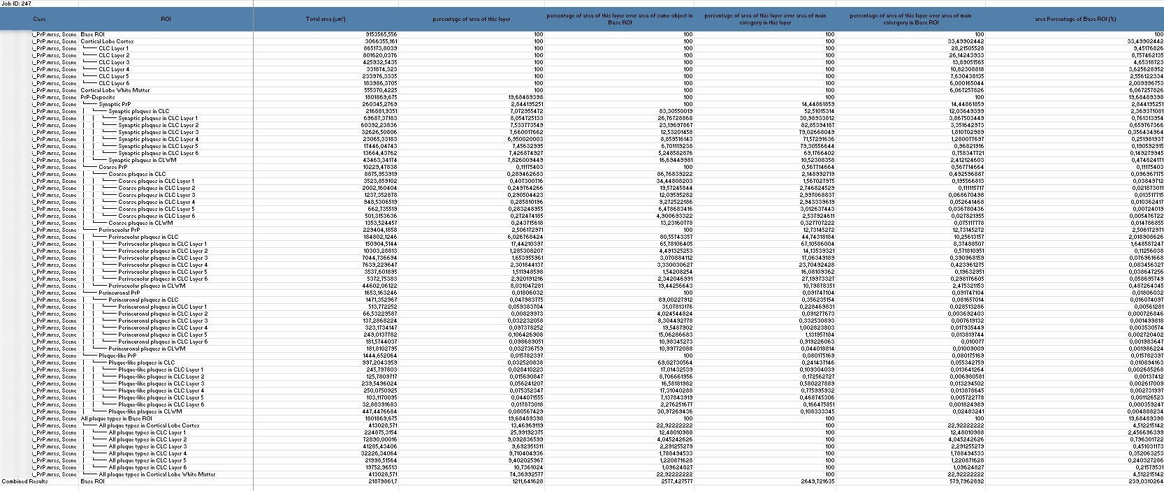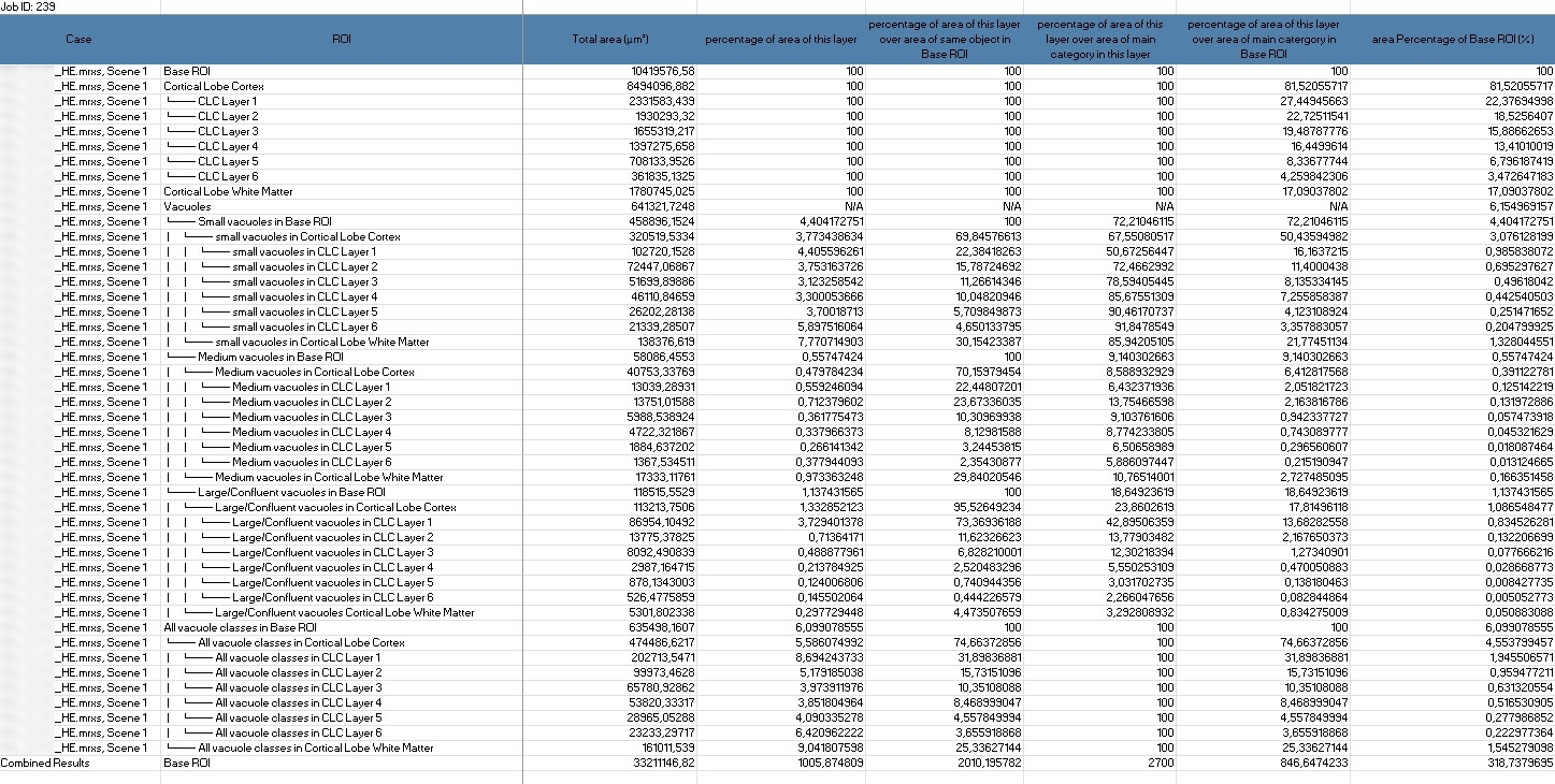 Total Area (µm²) and Percentage of Area of This Layer: These values provide information about the area occupied by structures within a layer.