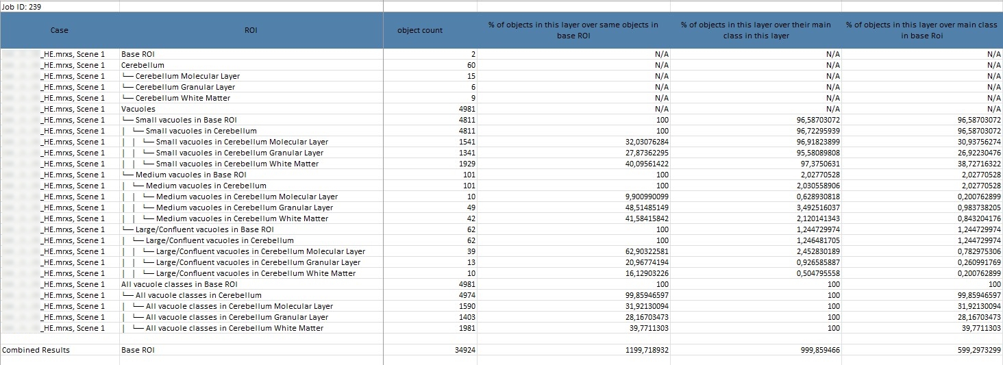 % of Area of This Layer Over Area of Same Object in Base ROI and % of Objects in This Layer Over Same Objects in Base ROI: These values are essential for comparing the distribution of objects in a layer to the entire examined region.