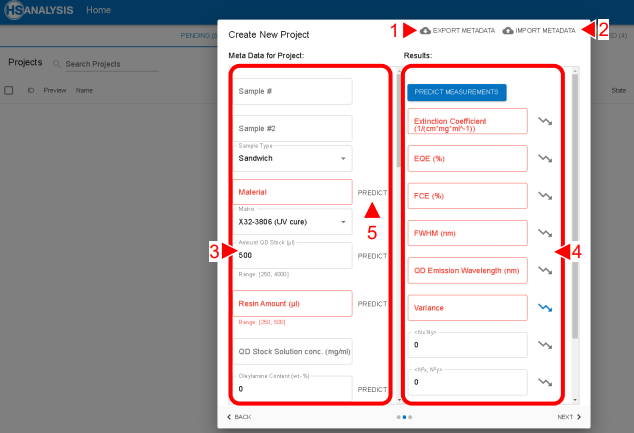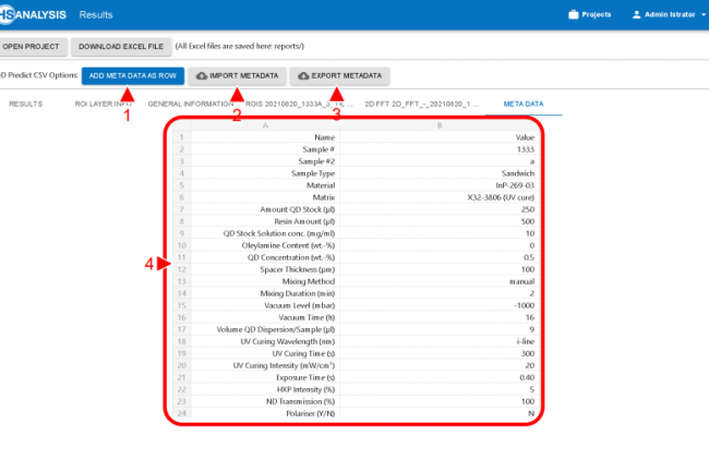 The HSA KIT software, ‘QD Surface Statistical Analysis Module’ provides the option to input metadata of a CSV file and predict results based on it.