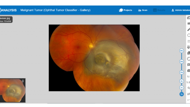 Using HSA KIT module ”Ophthal Tumor Classifier” AI algorithms as a guided tool in hospitals and research centers can certainly be a valuable approach to improving healthcare and treatment of diseases in ophthalmology, including the detection and analysis of Ophthalmic tumors. AI has the potential to analyze large amounts of medical data quickly and accurately, and to identify patterns and insights that may not be immediately apparent to human experts.