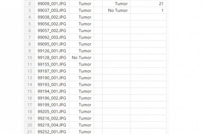 - The software simply categorize which images include tumors and which do not, as seen in the image below.