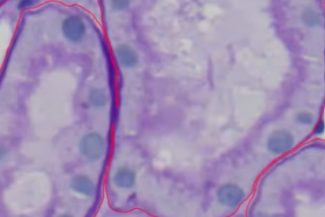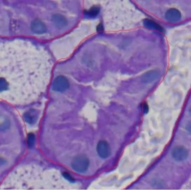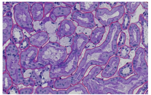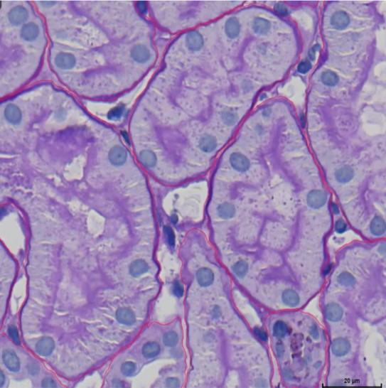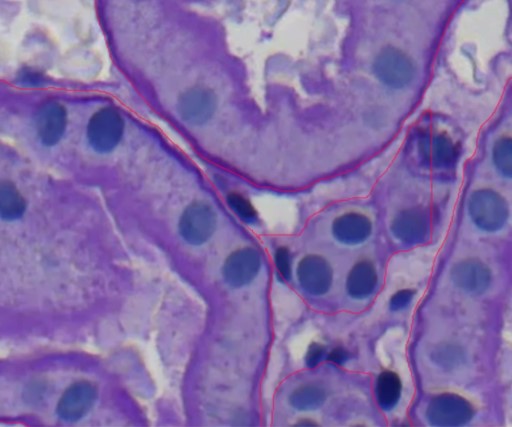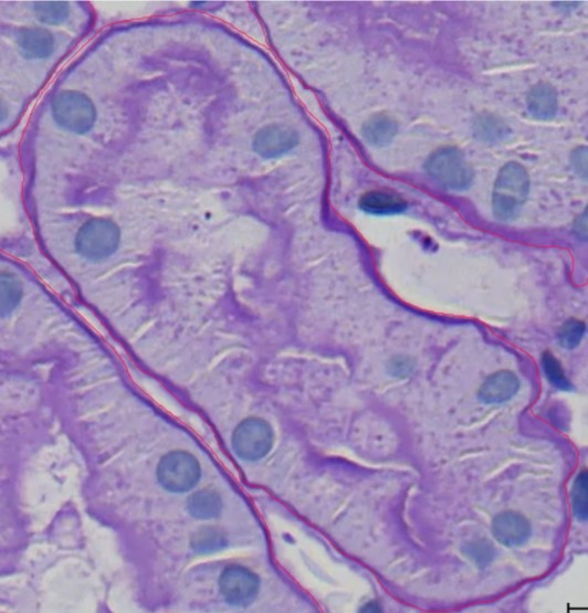 quality of but in some where you will see that the separations between two object it’s no complete as you can see in the image in bellow but also they annotated the objet really good they exclude the nuclei and annotated all mainframe and sharing Mein brane between tubuli and peri tubuli capilari (PTC).