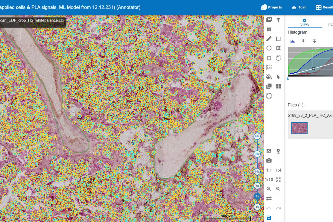 The company applies advanced microscopy and computer vision to analyze cellular processes, focusing on Proximity Ligation Assay (PLA) signals related to the NRF2-Keap1 cellular defense pathway. This approach enables detailed observation and analysis of cellular interactions at a microscopic level. Their technology identifies and analyzes PLA signals, offering critical insights into cellular responses to cancer therapies. This contributes to developing more effective, personalized treatment strategies.