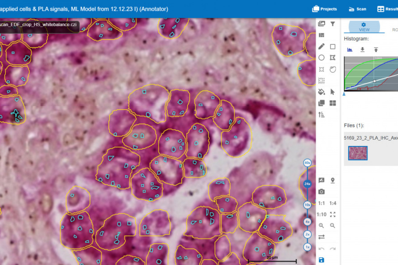 The aim of the Karlsruhe-based AI is to inform better therapy decisions, a vital step toward personalized cancer treatment. Clinical partners supply tumor tissue samples for the test and validation process. These WSIs are then analyzed using the company’s leading software, HSA KIT.