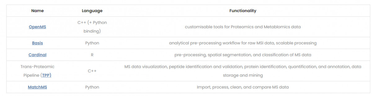 A community of bioinformaticians and software developers develop and maintain a wide range of software solutions covering majority elements of MS data analysis.